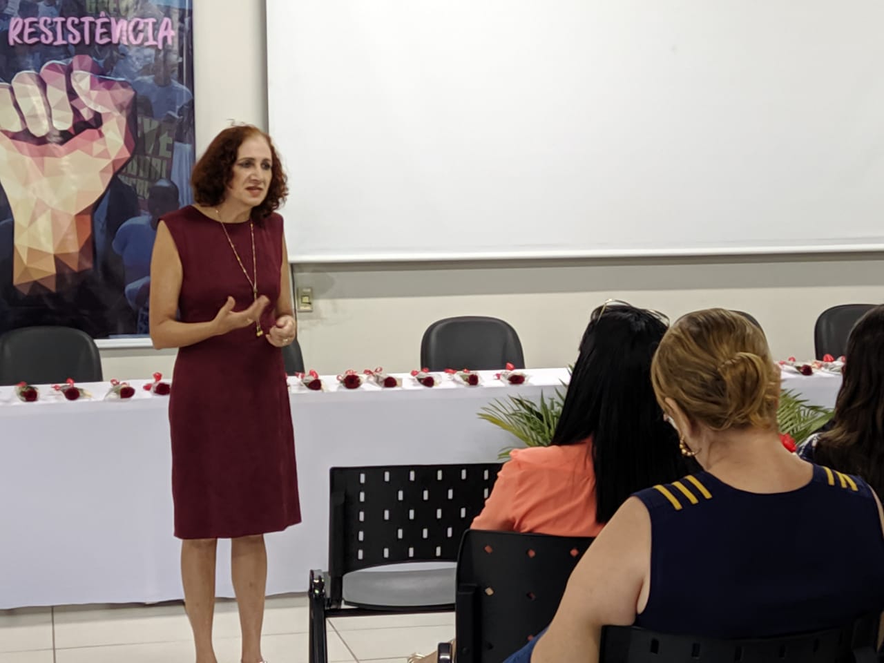 A representante da OAB de Gurupi, Jaqueline Ribeiro, agradeceu a presença dos homens por participar do debate – quatro estavam presentes. “É importante vocês estarem presentes, debatendo e participando desse debate, porque vocês são formadores de opinião e se relacionam com muitas mulheres[...] Eu tenho certeza que cada uma de nós aqui pode contar uma história de violência ou abuso que sofreu.”