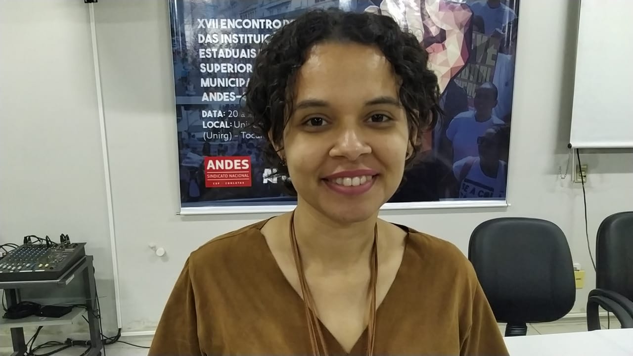 Professora Alana parabeniza a APUG pela realização do evento: clique aqui para ver o vídeo