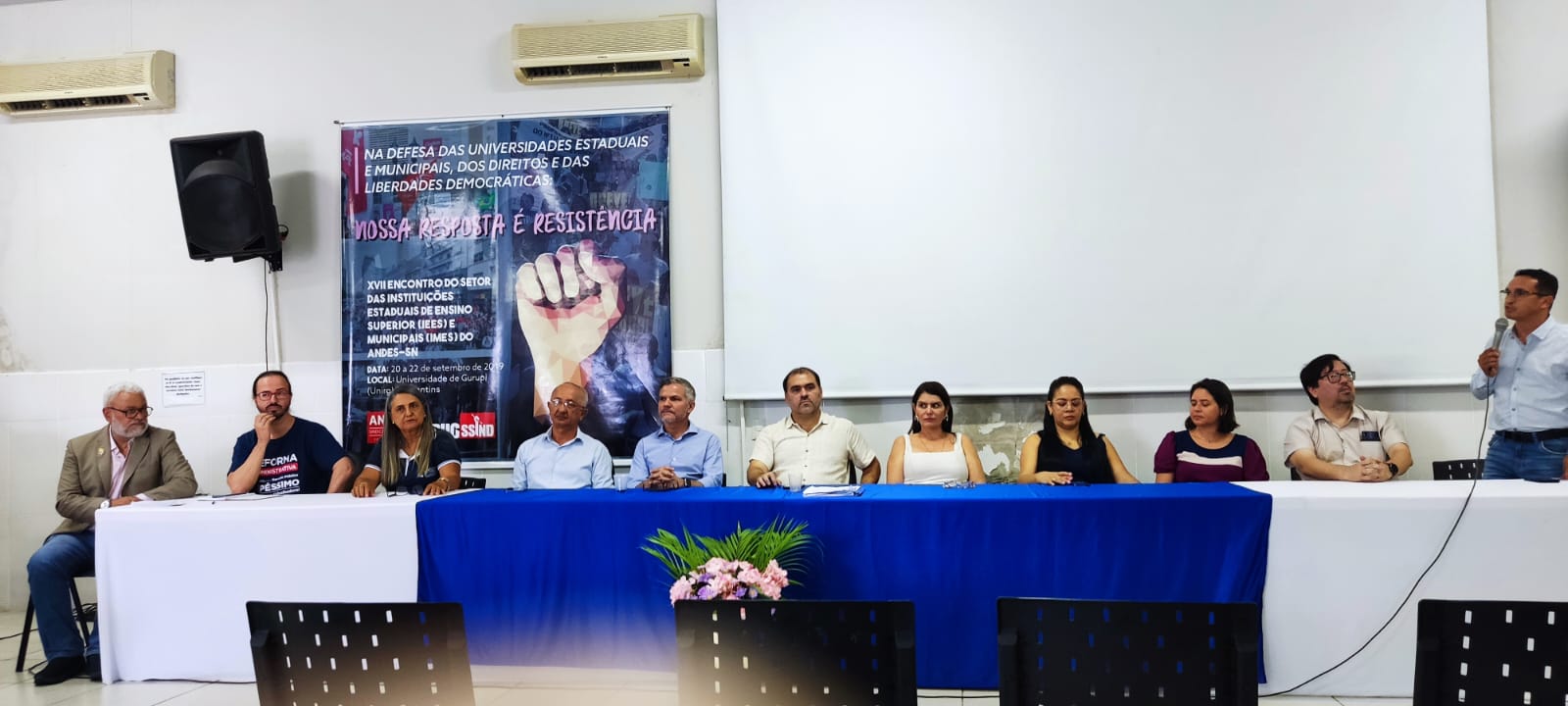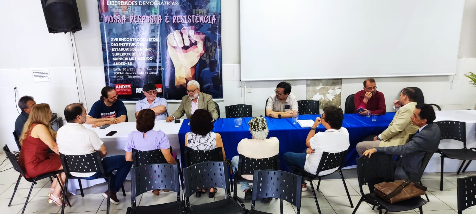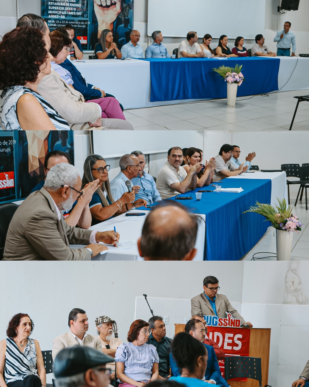 Durante a solenidade, compuseram a mesa representantes institucionais e de entidades sindicais parceiras que prestigiaram o momento de transição da gestão. Estiveram presentes a reitora da Universidade UnirG, professora Dr. Jaqueline de Kássia Ribeiro de Paiva; a presidente do SISEMG, Lucileia Barbosa do Nascimento; a representante do SINTET – Regional Gurupi, professora Vanda Paes França; o representante da SESDUFT – Seção Sindical dos Docentes da UFT, professor Fabiano Kenji Nohama; o presidente da ASAUNIRG, vereador Walter Coelho; além do professor Márcio Bernardes de Carvalho, que participou representando a Diretoria Nacional do ANDES-SN pela Regional Planalto. O presidente da Fundação UnirG Thiago Miranda foi representado pela Diretora Financeira Maria Adriana. Também estiveram presentes o Vice- Prefeito de Gurupi Adailton Fonseca e o Secretário de Governo Zezinho da Lá fiche, representando a Prefeita Josi Nunes.
