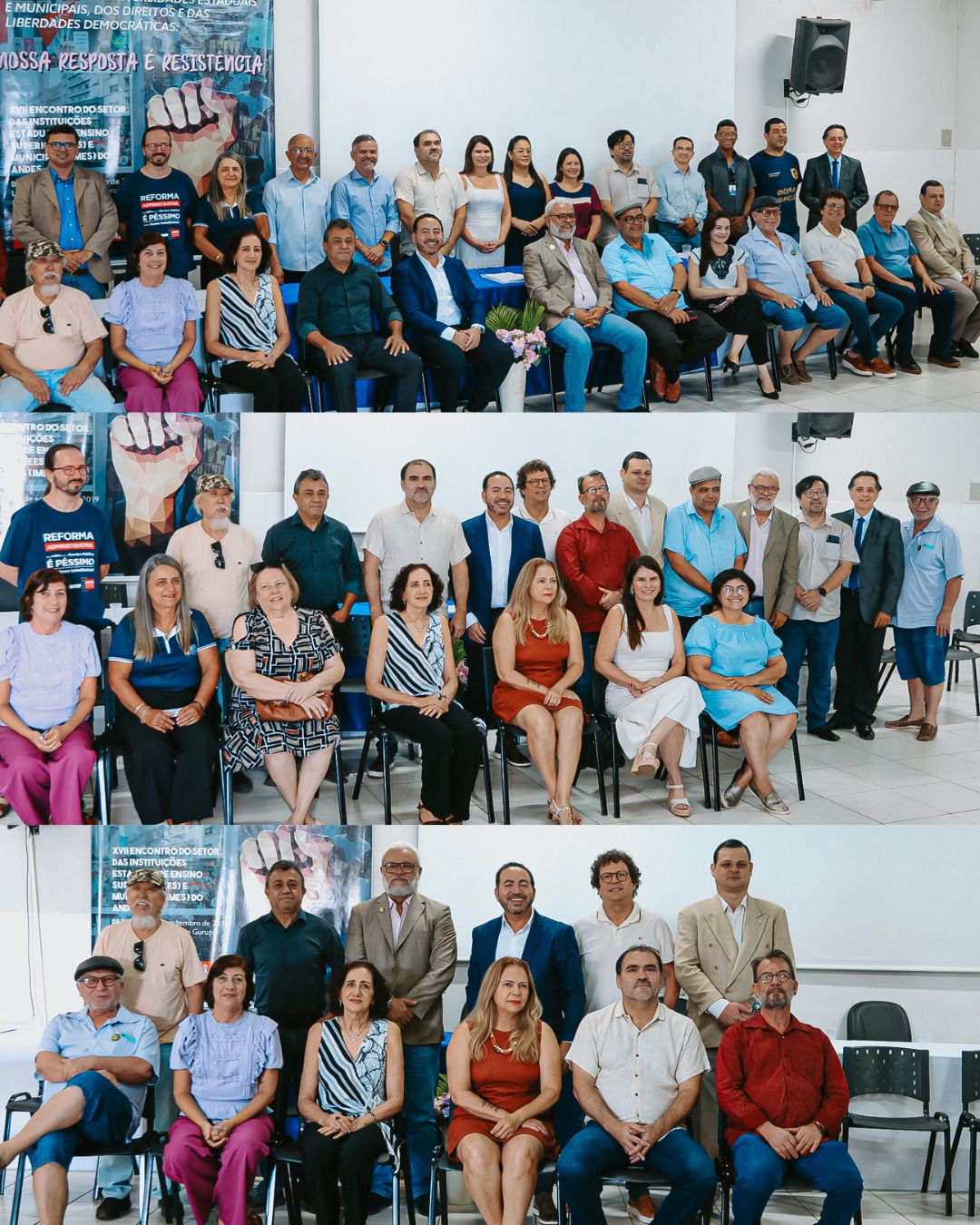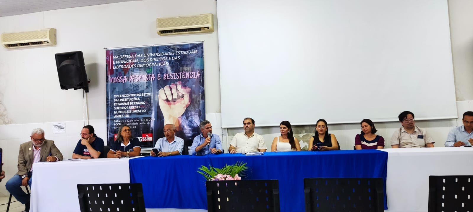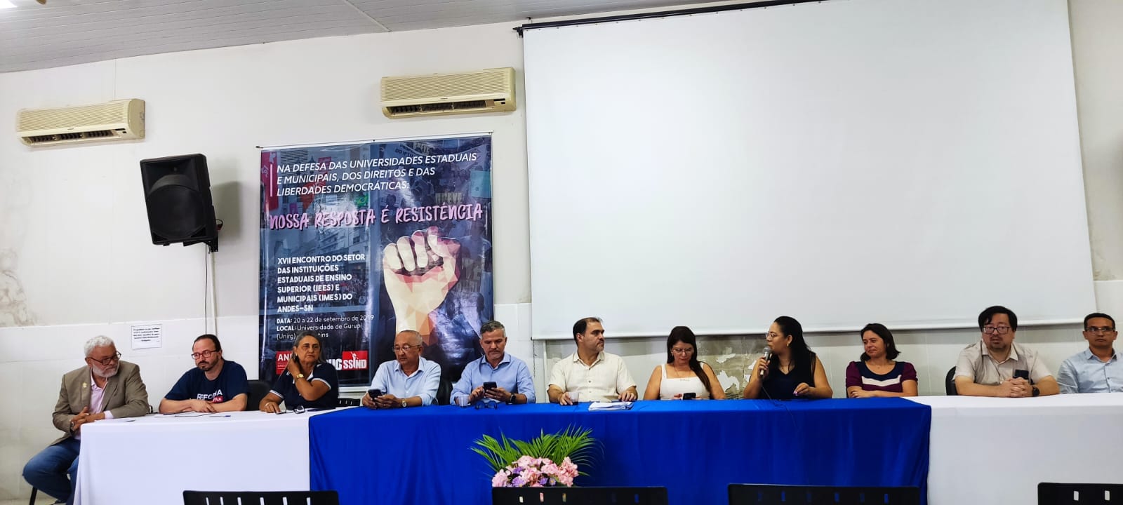 Durante a solenidade, compuseram a mesa representantes institucionais e de entidades sindicais parceiras que prestigiaram o momento de transição da gestão. Estiveram presentes a reitora da Universidade UnirG, professora Dr. Jaqueline de Kássia Ribeiro de Paiva; a presidente do SISEMG, Lucileia Barbosa do Nascimento; a representante do SINTET – Regional Gurupi, professora Vanda Paes França; o representante da SESDUFT – Seção Sindical dos Docentes da UFT, professor Fabiano Kenji Nohama; o presidente da ASAUNIRG, vereador Walter Coelho; além do professor Márcio Bernardes de Carvalho, que participou representando a Diretoria Nacional do ANDES-SN pela Regional Planalto. O presidente da Fundação UnirG Thiago Miranda foi representado pela Diretora Financeira Maria Adriana. Também estiveram presentes o Vice- Prefeito de Gurupi Adailton Fonseca e o Secretário de Governo Zezinho da Lá fiche, representando a Prefeita Josi Nunes.