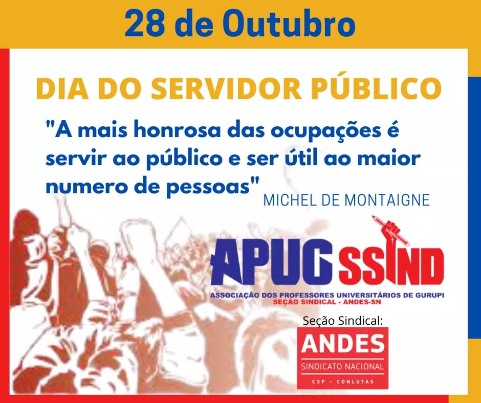 Homenagem da Apug-Ssind a todos os servidores da Unirg e do Município de Gurupi, do Tocantins e do Brasil.