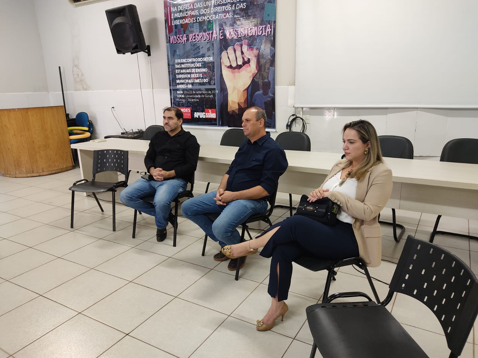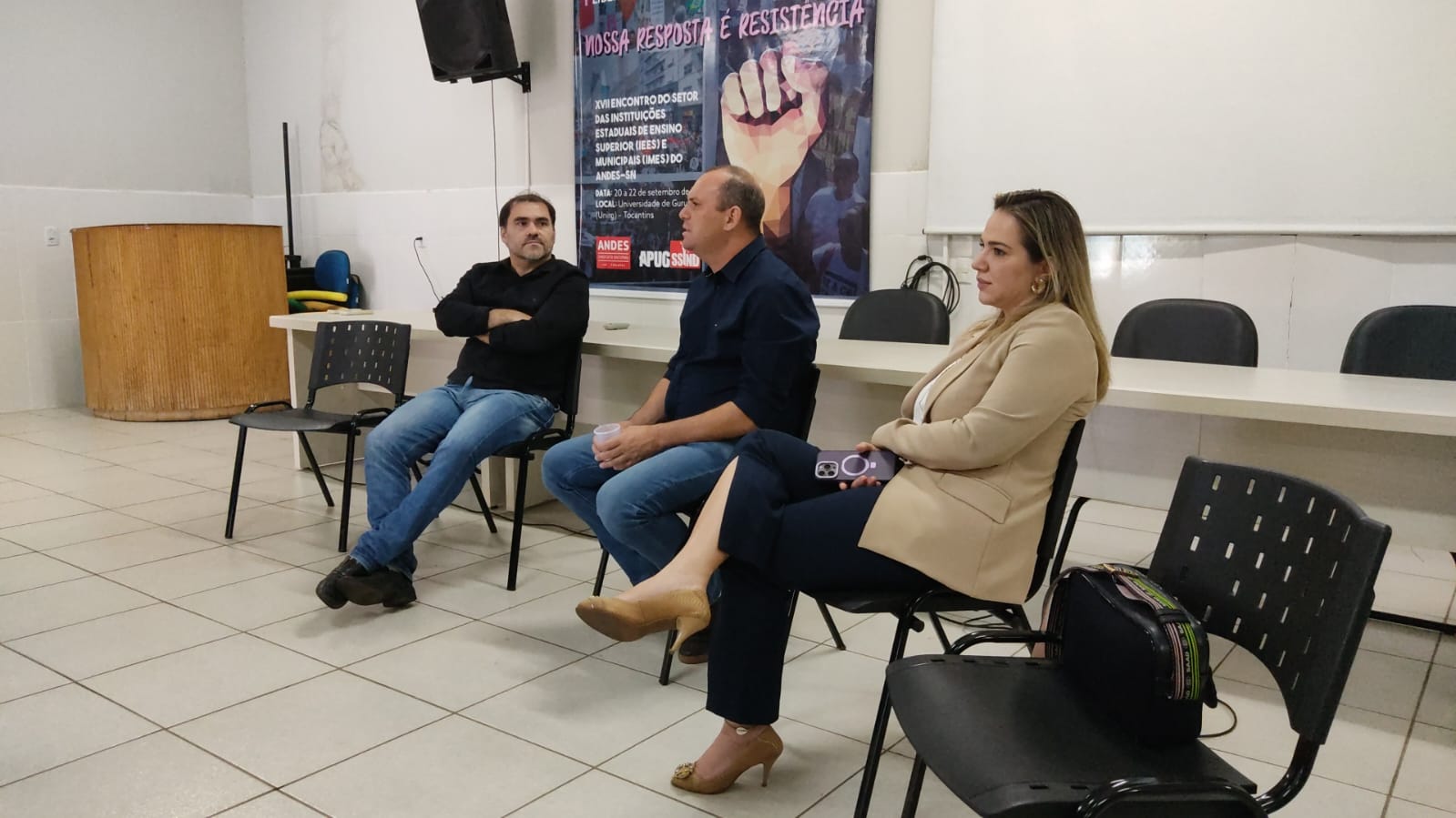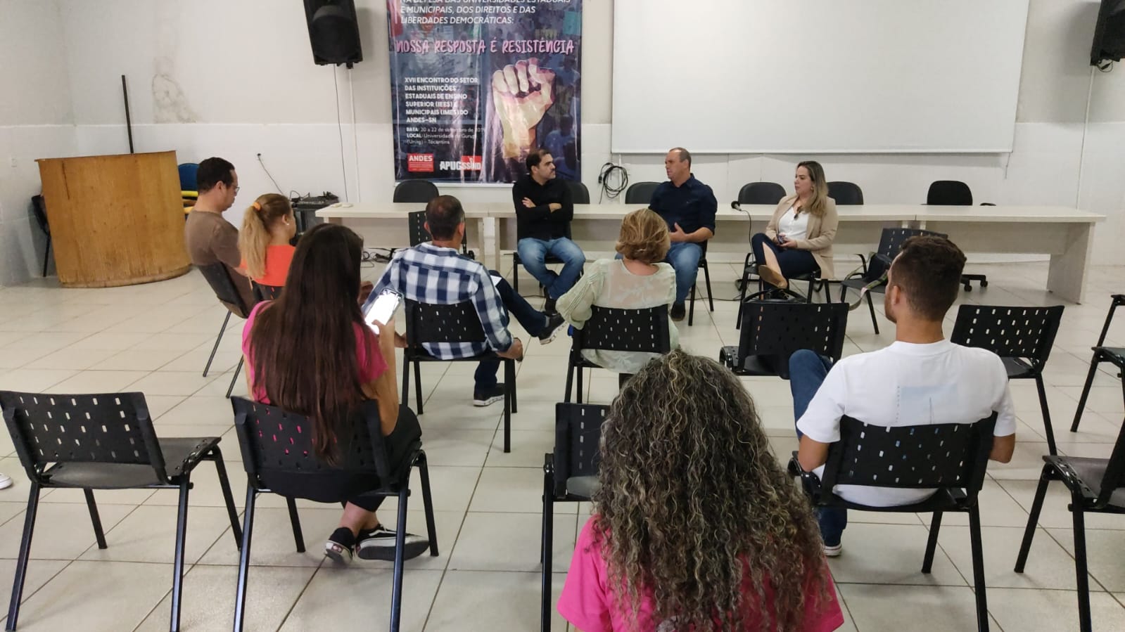 Os docentes presentes também apontaram em seus questionamentos a falta de concursos públicos para professores. Outro ponto levantado foi a demora nos processos internos da IES, que prejudica o trabalho docente, destacando a falta de empenho e apoio para que os professores possam obter uma nova formação, seja ela mestrado ou doutorado. Além disso, os docentes presentes solicitaram ao professor Netto que buscasse, junto à Universidade, a realização de um debate entre os candidatos a prefeito no auditório do Campus 1, ressaltando que a Universidade é, de fato, um espaço para o debate de ideias.